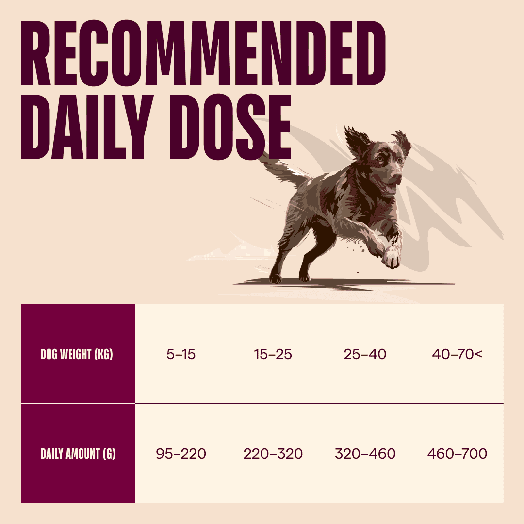 Samenstelling: vers lamsvlees (26 %), lamseiwit (26 %), gele erwten, rundvet (10 %), everzwijn eiwit (4 %), gehydrolyseerde lever (3 %), kikkererwten, gedroogde appelpulp, lijnzaad, pompoen, zalmolie (1 %), wortel, kaliumchloride, erwtenmeel, gedroogde duindoorn (0,2 %), gedroogde gemberwortel (0,1 %), gedroogde bosbessen (0,1 %), gedroogde rozemarijn (0,1 %), gedroogde veenbessen (0,1 %), gedroogde tijm (0,1 %), gehydrolyseerde schalen van schaaldieren (bron van glucosamine, 0,022 %), cichoreiwortel (bron van fructo-oligosacchariden, 0,0163 %), kraakbeen extract (bron van chondroïtine, 0,014 %), biergist (bron van mannan-oligosacchariden, 0,013 %), yucca schidigera (0,085 %).