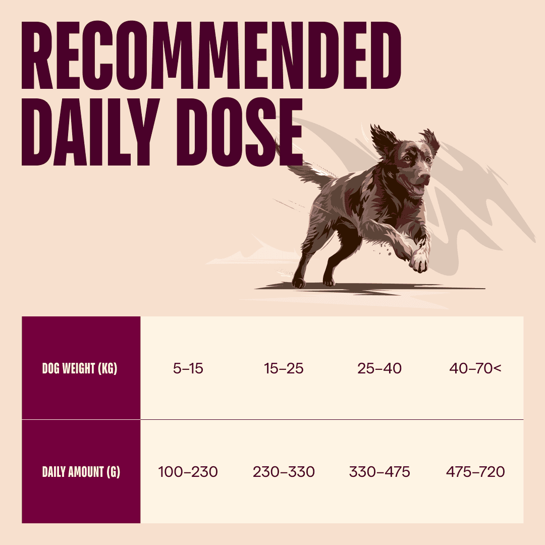 Voedingsadvies: Het voer kan droog geserveerd worden of bevochtigd worden met lauw water. De dagelijkse hoeveelheid hangt af van leeftijd, grootte, activiteit en omgeving. De aanbevolen dagelijkse portie staat vermeld in de voedingstabel en moet over de dag worden verdeeld in 1-2 gelijke porties. Als u het Carnilove True Fresh voer voor de eerste keer geeft, gebruik dan een kleinere hoeveelheid en meng deze met het vorige voer en verhoog geleidelijk de hoeveelheid Carnilove True Fresh. Zorg ervoor dat uw hond altijd voldoende vers water te drinken heeft. De datum van minimale houdbaarheid: zie verpakking. Op een droge en koele plaats bewaren, vermijd direct zonlicht.