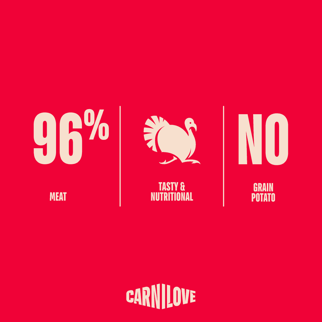 Samenstelling: kalkoen 96 %, lignocellulose, erwtenmeel.