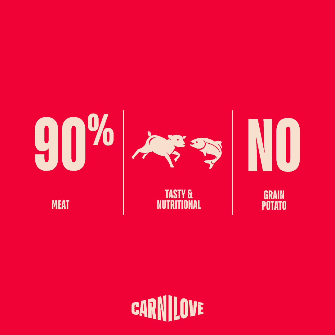 Samenstelling: lamsvlees 64 %, zalm 26 %, plantaardige glycerine, lignocellulose, natriumchloride, groenlipmossel.