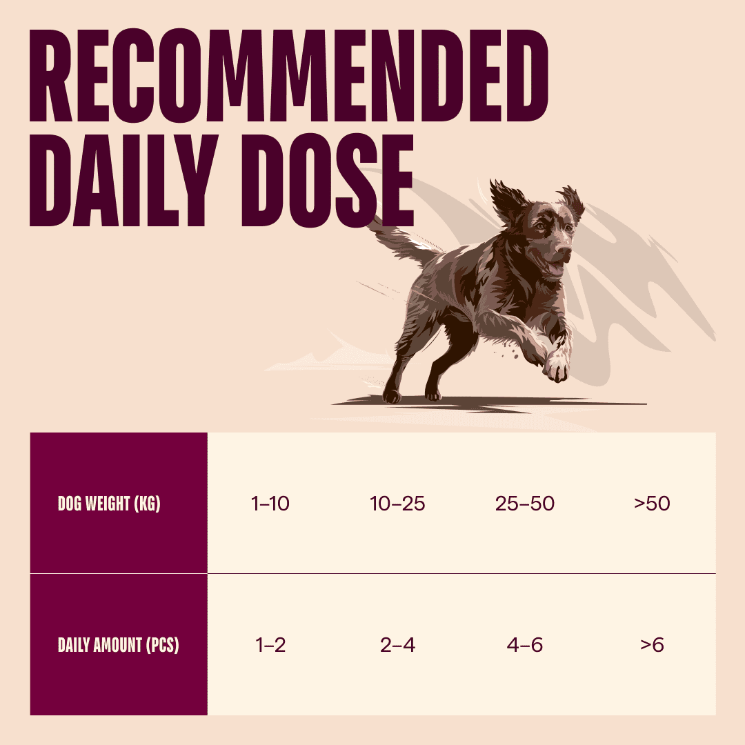 Voedingsadvies: Jerky Snack is een gezonde, vleesrijke en smakelijke aanvulling op het normale dieet van je hond. Geef dagelijks als beloning of als tussendoortje tijdens gedeelde momenten tijdens de dag. Zorg ervoor dat je hond altijd voldoende vers drinkwater ter beschikking heeft. Dit product is geen vervanging voor een uitgebalanceerd dieet met een dagelijkse inname van voedingsstoffen. Omdat het product zeer smakelijk is, voer niet te veel en zorg dat je hond voldoende beweging krijgt. Op een droge en koele plaats bewaren, vermijd direct zonlicht. Ten minste houdbaar tot / partijnummer: zie verpakking. Na opening de verpakking weer sluiten.