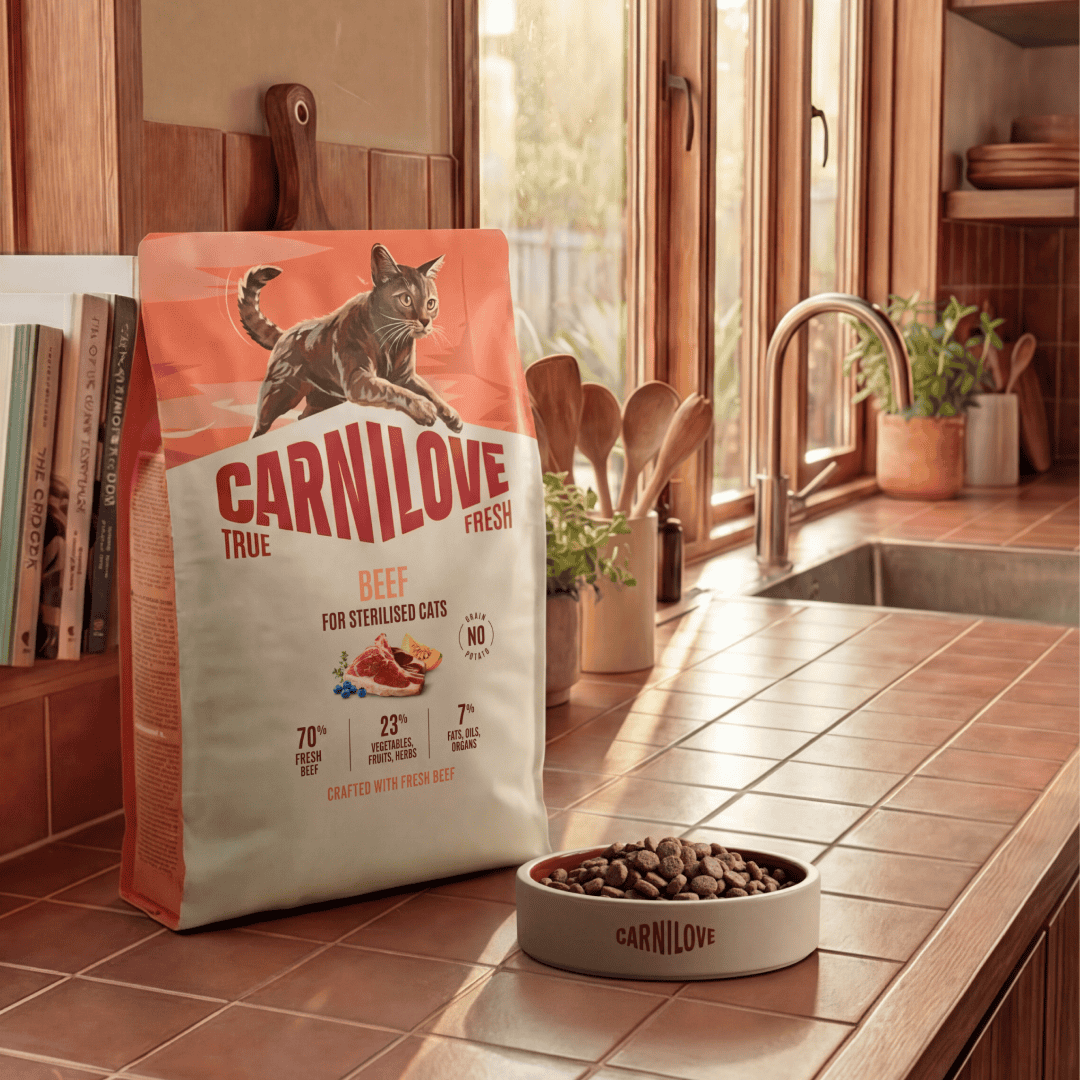 Voedingsadvies: Het voer kan droog geserveerd worden of bevochtigd worden met lauw water. De dagelijkse hoeveelheid hangt af van leeftijd, grootte, activiteit en omgeving. De aanbevolen dagelijkse portie is aangegeven in de voedingstabel. Het voer moet gedurende de dag vrij beschikbaar zijn. Als u het Carnilove True Fresh voer voor de eerste keer geeft, gebruik dan een kleinere hoeveelheid en meng deze met het vorige voer en verhoog geleidelijk de hoeveelheid Carnilove True Fresh. Zorg ervoor dat uw kat altijd voldoende vers water te drinken heeft. De datum van minimale houdbaarheid: zie verpakking. Op een droge en koele plaats bewaren, vermijd direct zonlicht.