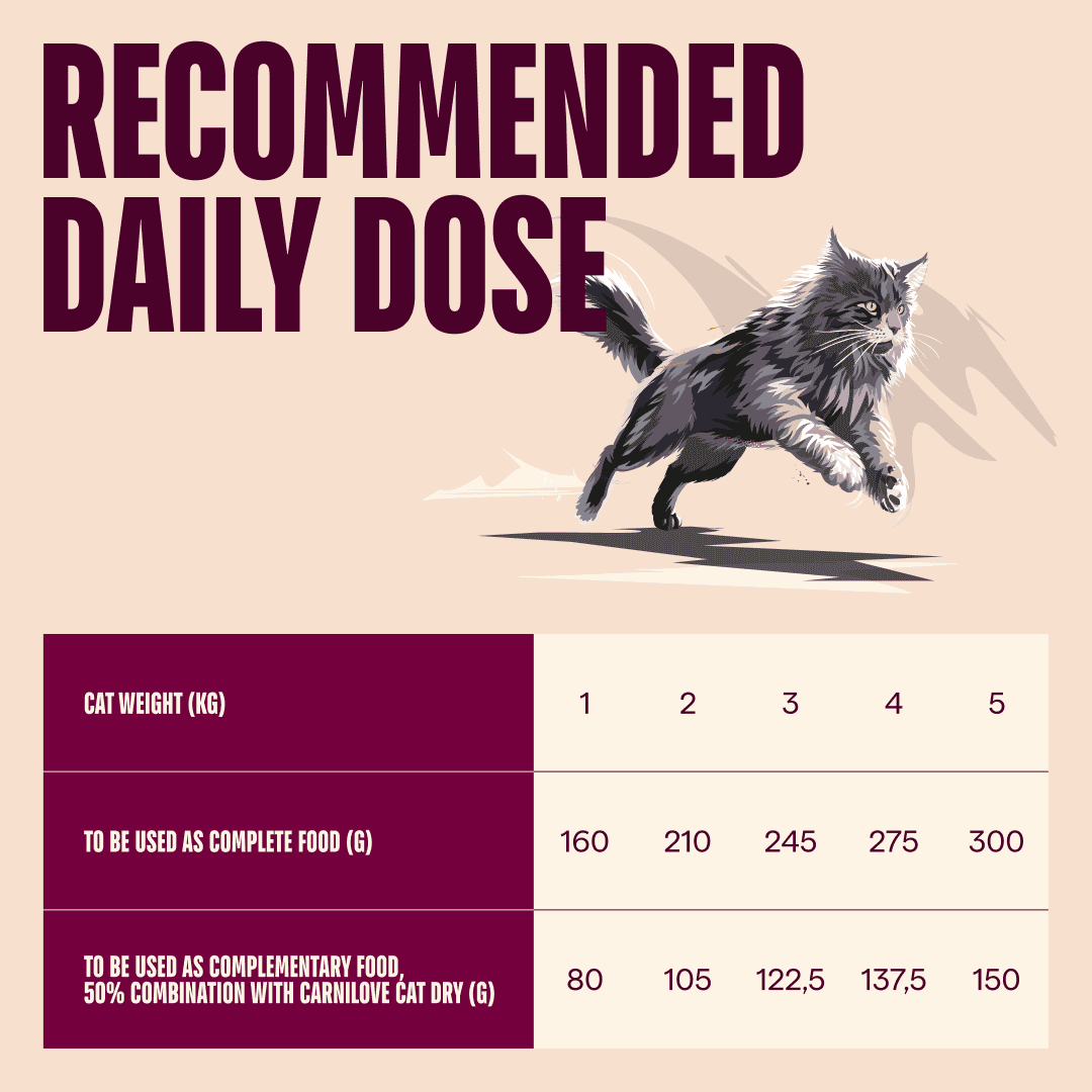 Voedingsadvies: De aanbevolen dagelijkse portie staat vermeld in de voedingstabel. Zorg ervoor dat uw kat altijd voldoende vers drinkwater ter beschikking heeft. Â Geef het voer op kamertemperatuur. Na openen in de koelkast bewaren. Houdbaarheidsdatum en partijnummer: zie onderkant van het blikje. Na openen in de koelkast bewaren en binnen 3 dagen opmaken.