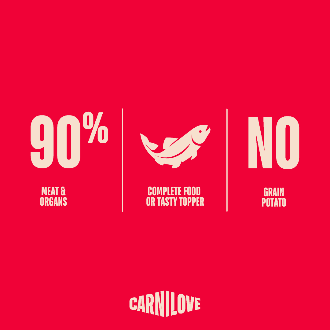 Analytische bestanddelen: ruw eiwit 7,0 %, ruw vet 4,5Â %, ruwe vezels 0,7Â %, ruwe as 2,0 %, vocht 80,0Â %, calcium 0,2Â %, fosfor 0,2 %, natrium 0,3Â %, omega-3 vetzuren 0,2 %, omega-6 vetzuren 1,5 %.