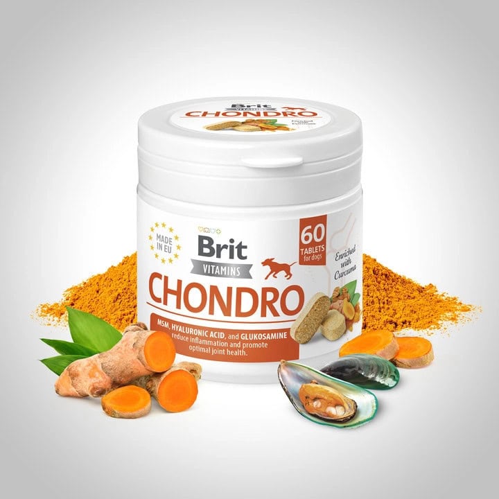 Samenstelling: lactose, glucosamine (250.000 mg/kg), chondroïtinesulfaat (200.000 mg/kg), methylsulfonylmethaan (100.000 mg/kg), gehydrolyseerde lever, lignocellulose, gedroogde kurkuma (10.000 mg/kg), hyaluronzuur (9.000 mg/kg), groenlipmossel (5.000 mg/kg).