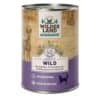 Samenstelling: wild 62% (hart, vlees, lever, long, pens), bouillon 27,5%, pompoen 4%, wortelen 3%, rode bosbessen 2%, mineralen 1%, distelolie 0,3%, yucca-extract 0,1%, wilde kruiden 0,1% (basilicum, kamille, paardenbloem, peterselie, rozemarijn).